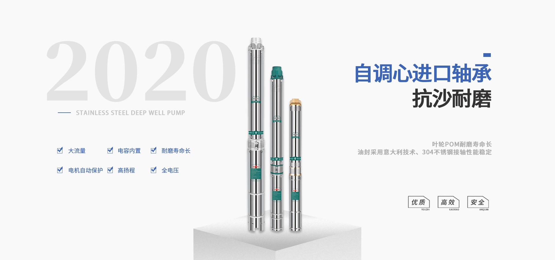 公司始终站在深井泵行业的前端位置,科研力量、产品和设备技术水平均达到国内优质水平,公司始终坚持走科技兴企、自主创新的企业发展之路,产品不断推陈出新,可广泛应用于农业灌溉、生活用水、循环供暖、污水处理、市政供水、石油化工、冶金矿山等领域。
